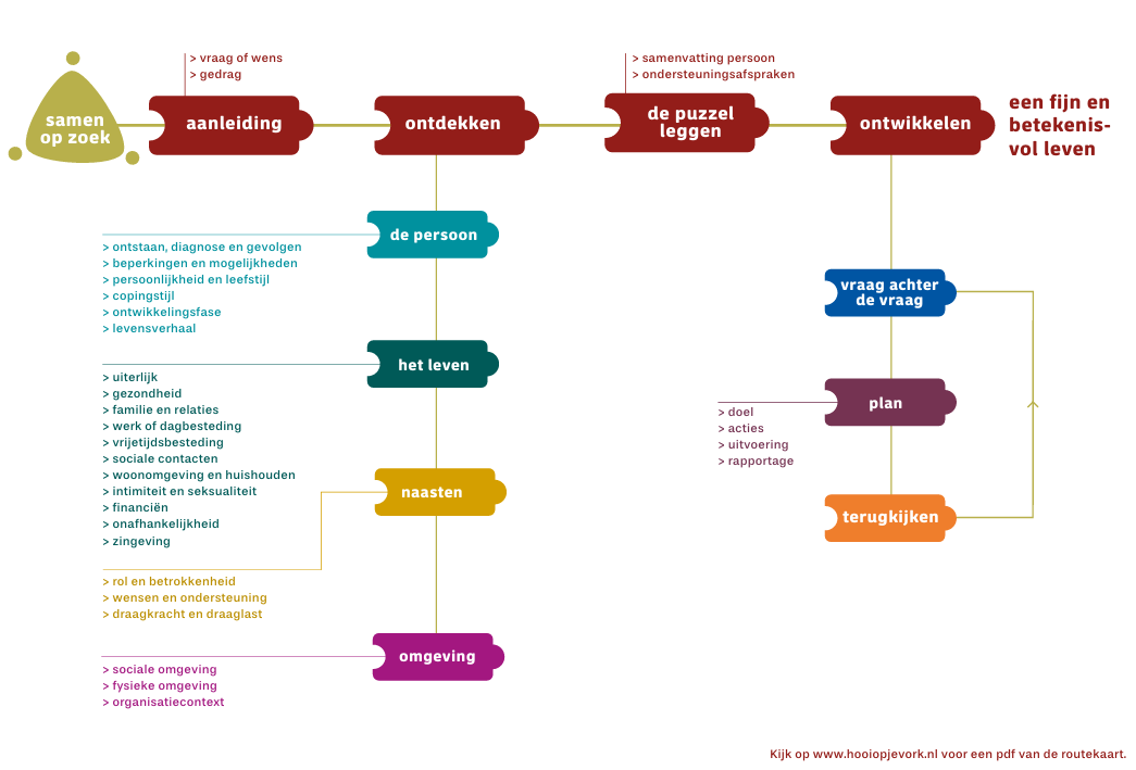Hooi op je vork is ontwikkeld als handreiking bij het vinden van antwoorden op deze vragen. Een methode voor het ondersteunen van mensen met niet-aangeboren hersenletsel, zowel ambulant, in dagbesteding als op woonlocaties. Hooi op je vork is in 1999 ontstaan en is samen met mensen met NAH, hun naasten en professionals ontwikkeld. Dit leidde tot de boeken Hooi op je vork (Van Belle & Zadoks, 1999) en Methodisch ondersteunen met hersenletsel (Van Belle & Zadoks, 2005). De methode is bij uitstek geschikt om vraaggericht werken in de praktijk vorm te geven. Dit wordt vormgegeven door de dialoog tussen de persoon met NAH, de naaste en de professional om tot oplossingen en gerichte acties te komen. Hierin staan de behoeften en wensen van de mens met NAH centraal staan, maar wordt ook de inbreng van de naaste en professional in kaart gebracht en in de dialoog meegenomen. De werkwijze wordt toegepast in tientallen organisaties in verschillende zorgsector, maar ook door mantelzorgers thuis. Mensen met niet-aangeboren hersenletsel en begeleiders zijn zeer enthousiast over de werkwijze, zo blijkt ook uit onderzoek. De methode wordt al vijfentwintig jaar succesvol gebruikt in de gehandicaptenzorg, verpleeghuiszorg en ggz, op woonlocaties, activiteitencentra en thuis. In 2025 was het tijd om het boek helemaal te herzien. Het heeft nu meer de vorm van een werkboek. Het taalgebruik en de opzet zijn aangepast aan de huidige tijd. Het boek omvat bovendien veel nieuwe informatie en voorbeelden. Zo kan het weer jaren mee om mensen met hersenletsel te ondersteunen en professionals houvast en inspiratie te geven.